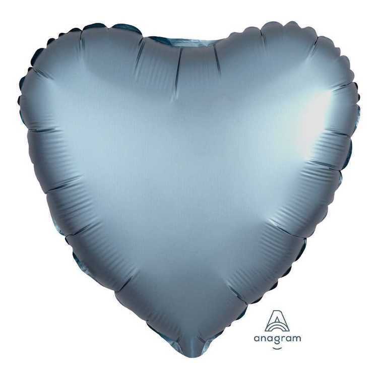 А 19"/48 см, Сердце, Сатин, Серый/Стальной Синий (Steel Blue), 1 шт