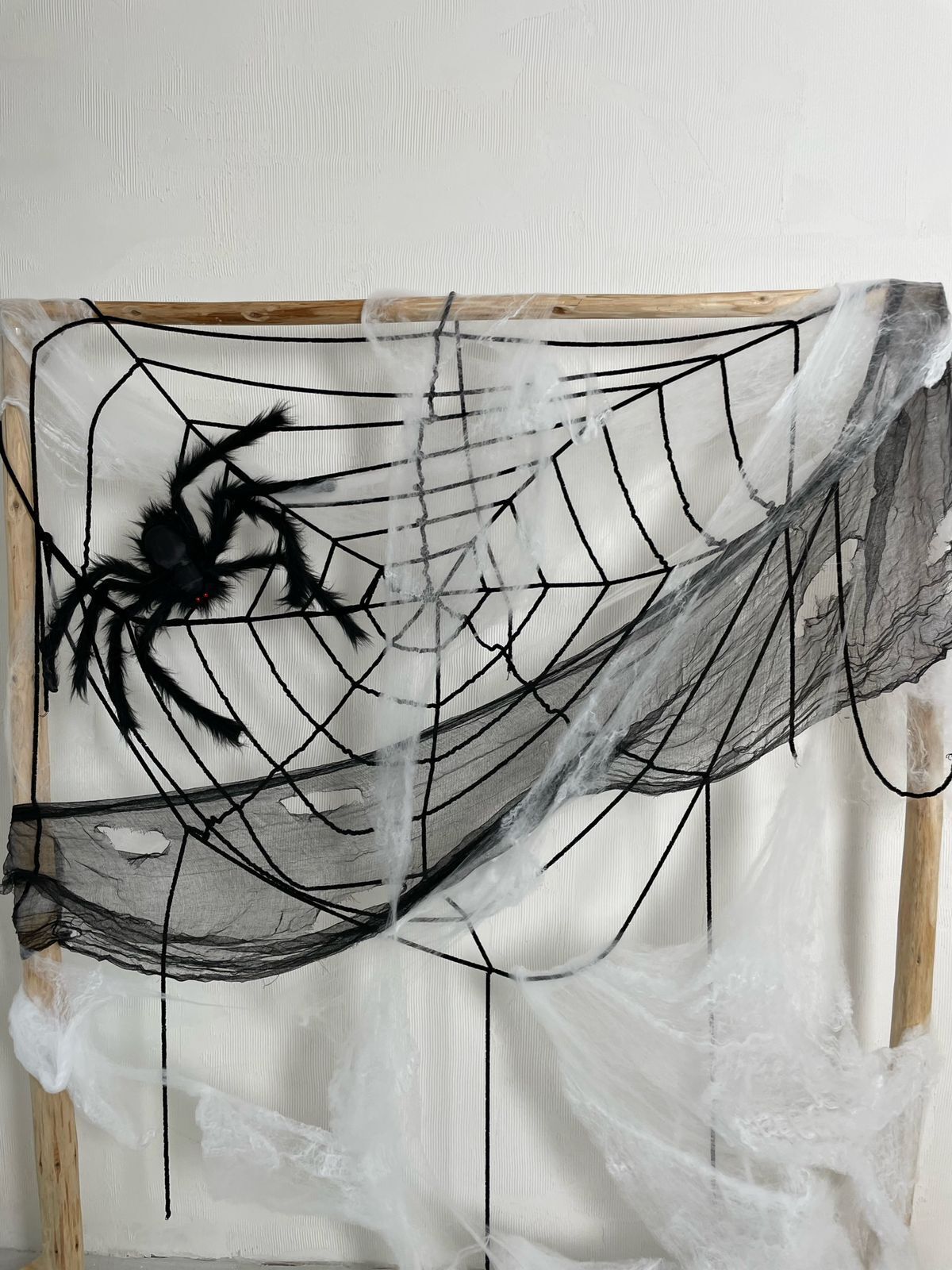 Декор из паутины, паука и драпировки
