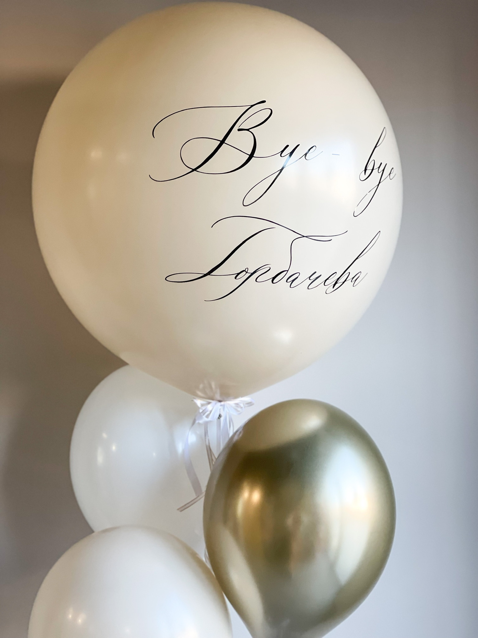 • Фонтан из шара 60 см с надписью, 2 однотонных и 1 хром золото