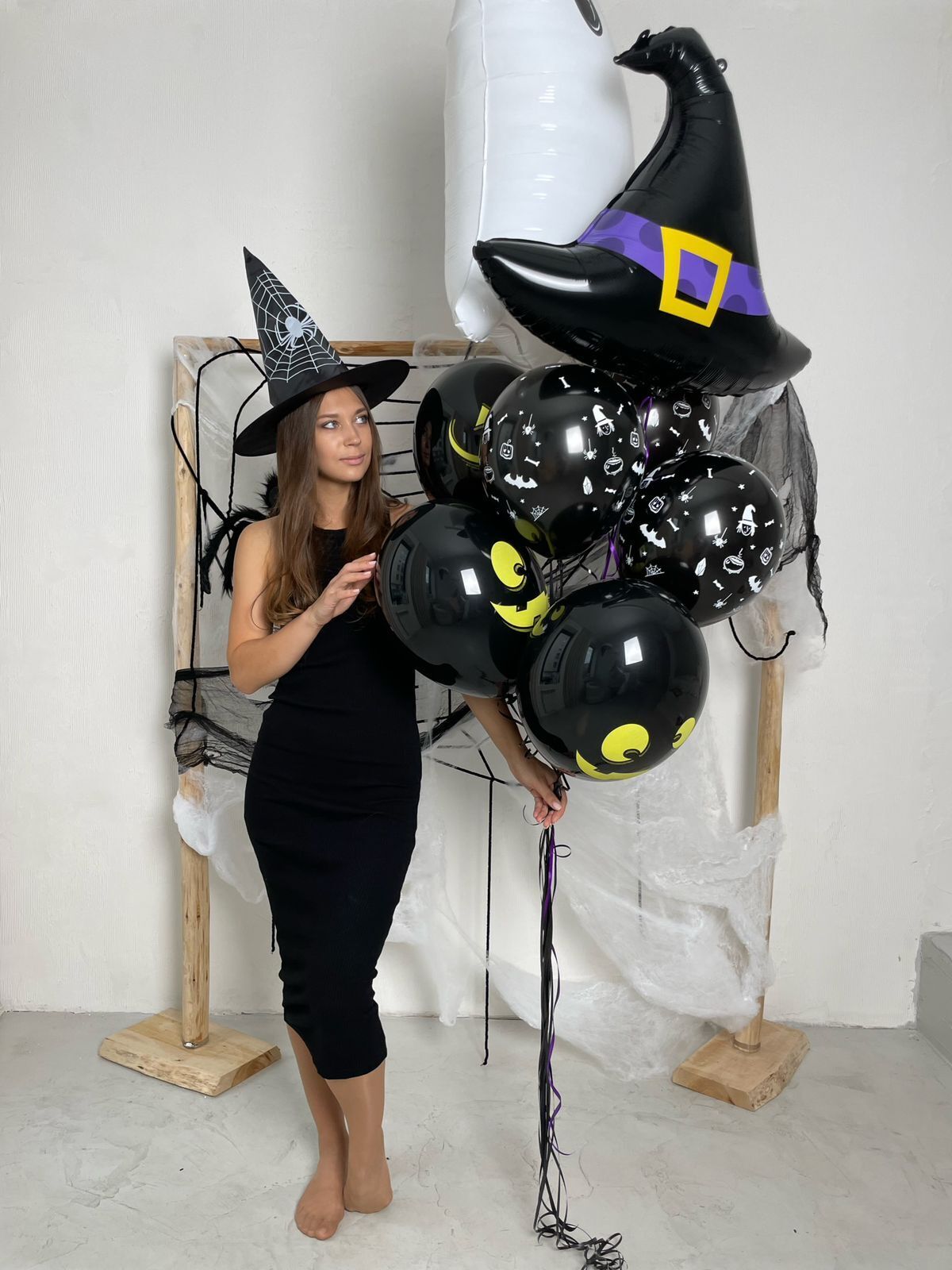 • Фонтан из 7 шаров (фигура «Шляпа», 6 латексных Шаров с дизайном Хэллоуин)