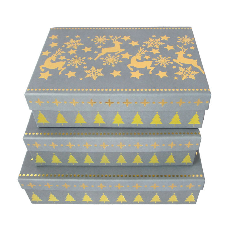 Коробка "С Новым Годом! Золотые олени", Серый, Тиснение фольгой 3 - 27,5*19,5*7,5 см