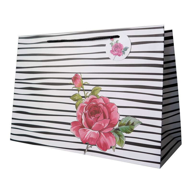Пакет подарочный "Полоски с розой" 39*17*27 см