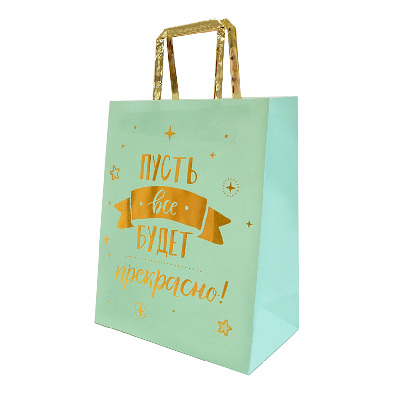 Пакет подарочный "Пусть все будет прекрасно!" Тиснение фольгой 26*12*32 см