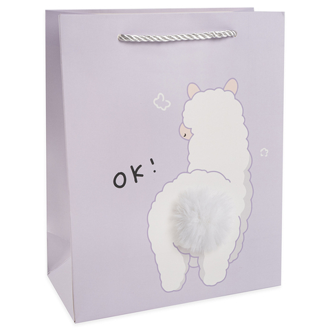 Пакет подарочный S вертикальный, "Пушистый хвост", Лама, 19,5*24,5*9,5 см (Д*В*Ш)