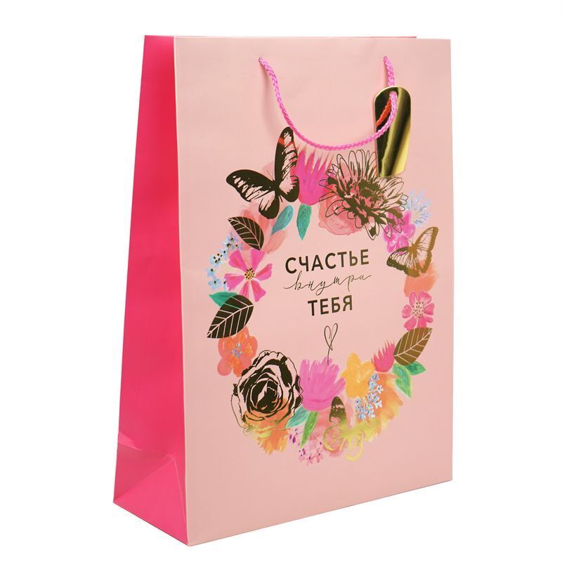 Пакет подарочный "Золотые бабочки" 31*12*42 см