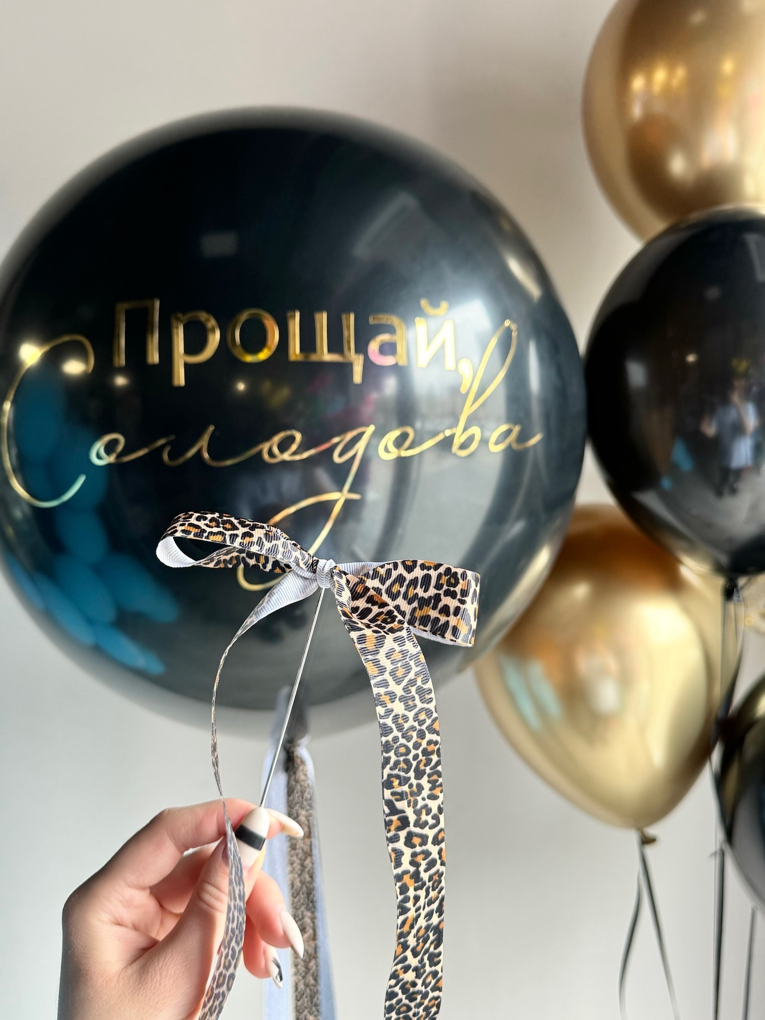 Фонтан из 5 шаров (2 хром золото, 2 черных, 1 прозрачный с конфетти)