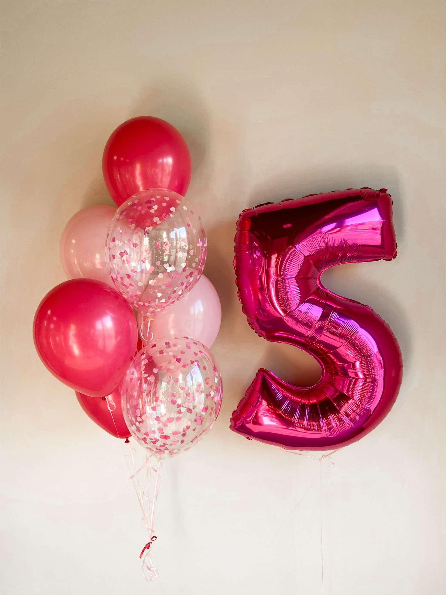 - Фонтан из 7 шаров: 2 с конфетти и 5 однотонных.