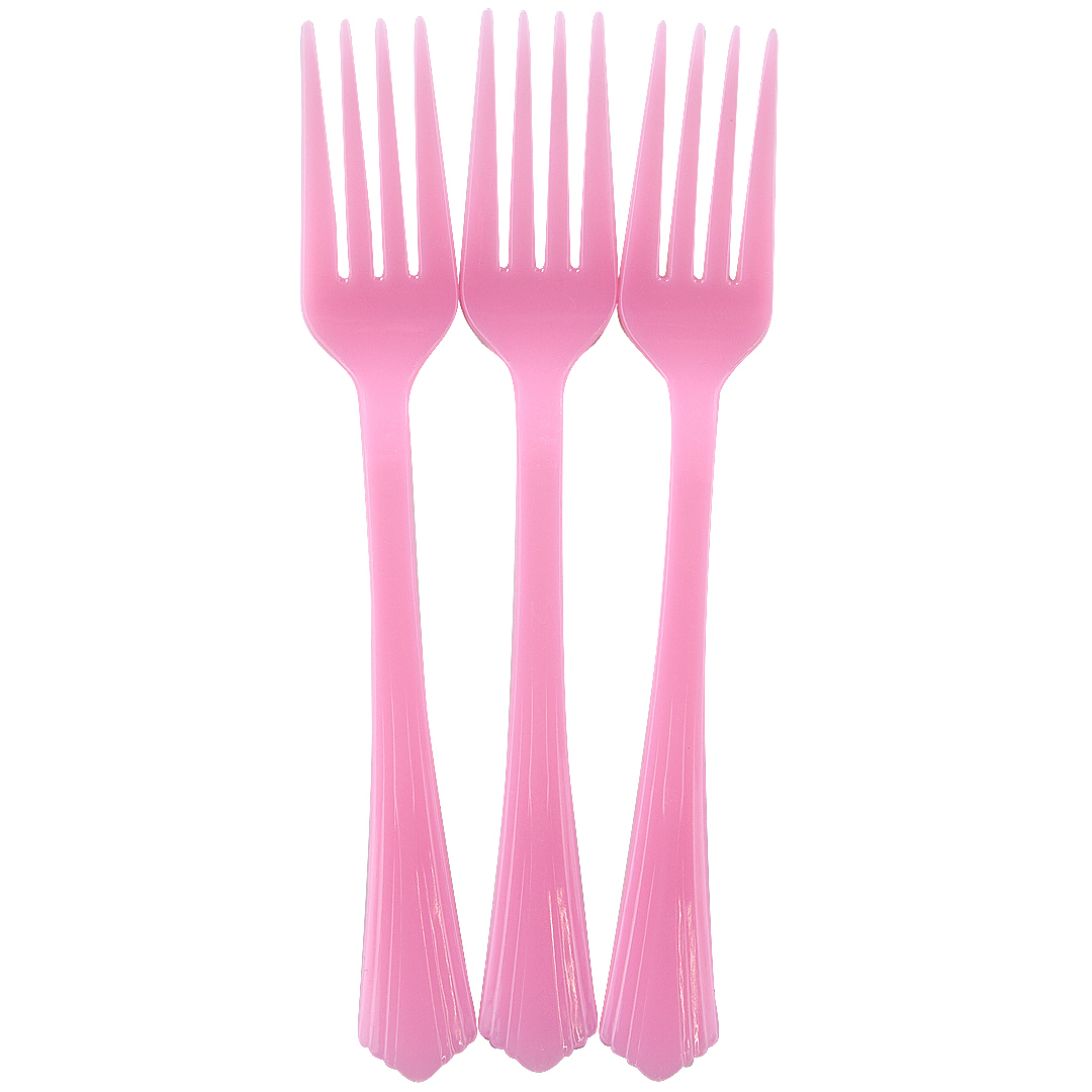 Столовые приборы, Вилки, пластик, Розовый, 17 см, 10 шт.