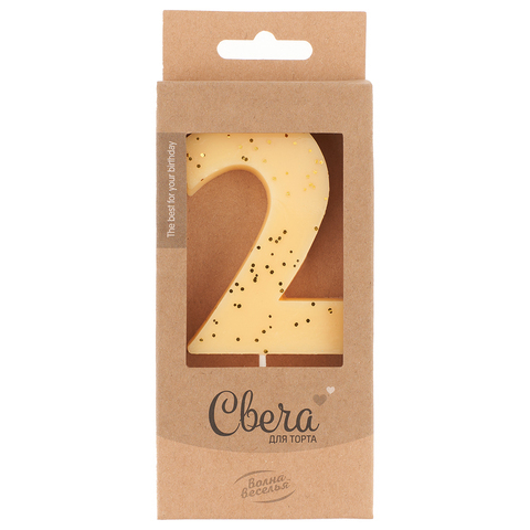 Свеча-цифра ЭКО, Кремовый, с блестками, "2", 7,5 см