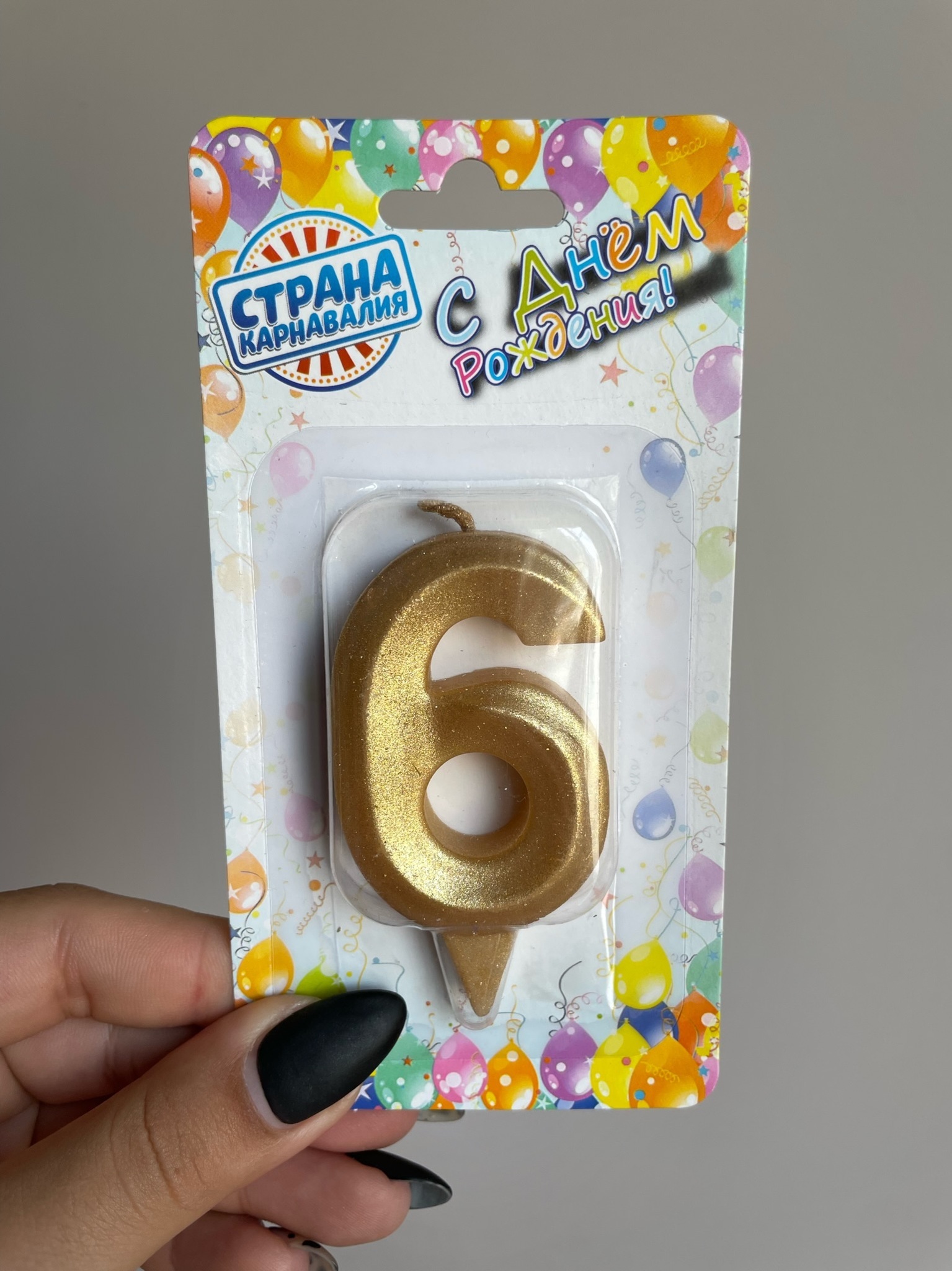 Свеча в торт "Грань", цифра "6", золотой металлик, 7.8 см