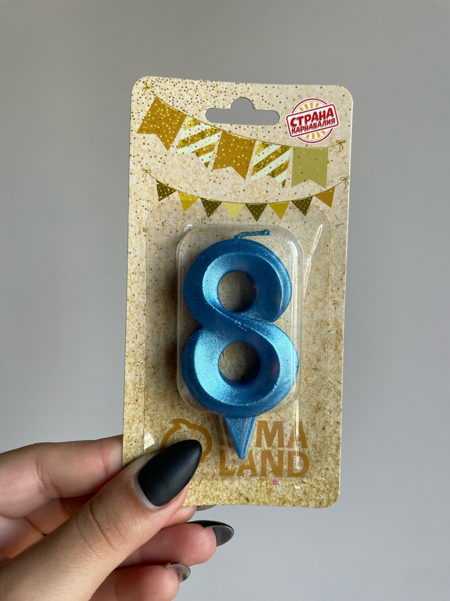 Свеча в торт "Грань", цифра "8", голубой металлик, 7.8 см