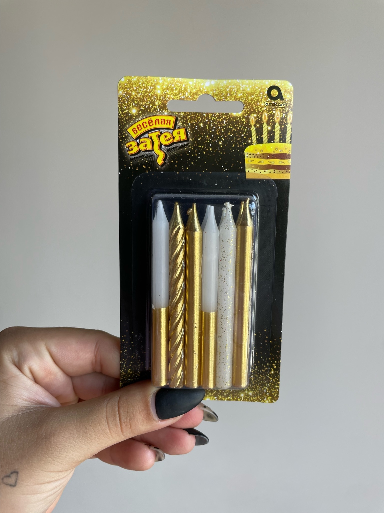 Свечи д/торта золот/бел блеск 8см 12шт/A