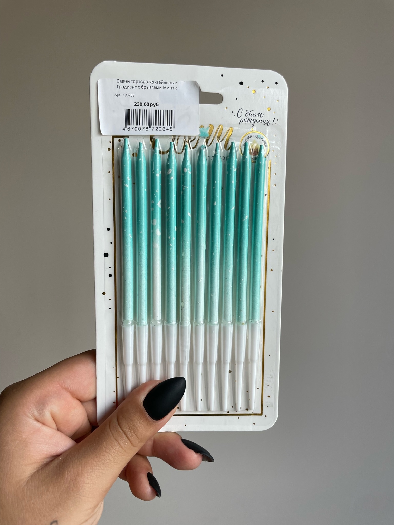Свечи тортово-коктейльные Градиент с брызгами Минт с держателями