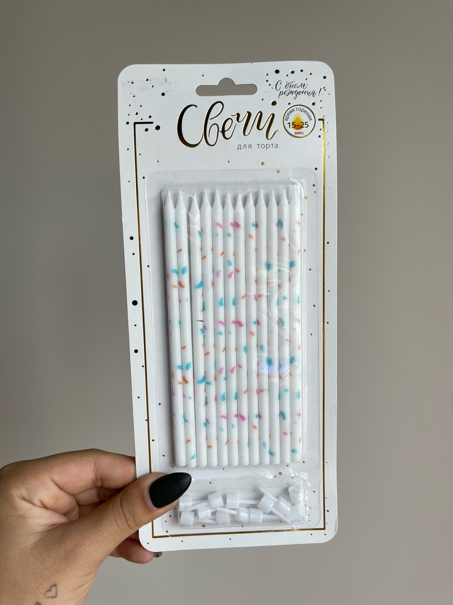 Свечи тортовые классические, Яркие брызги, с держателями XL, 14,5 см, 12 шт, 1 уп.